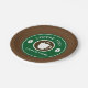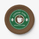 Disposable plates with custom warm coffee cup design. Brown and green colours with personalised white text. Coffee theme throwaway plates for home, cafe, dinner party, lunch room, cafetaria, restaurant, breakfast table, cookies, cake and desserts etc. Cute gift idea for coffee lover or caffeine addict. Fun for Birthday party, baby shower, girls weekend, wedding, bridal shower, housewarming etc.