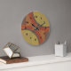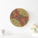 Dissolution wall clocks with black numbers. Dissolution is an abstract design created by Vexenwraith and consists of red, orange, olive and grey circles and rectangles.