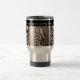 A distinctive Non-spill Travel Mug to personalize, with an abstract swirling, shimmering, snakeskin-effect pattern in brown and silvery white, from a digital design by Judy Adamson. You can customize the Text and easily change the font or colour of the text.