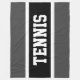 This fun sports design features classic strong bold big letters inside a highlighted wide black stripe with white pinstripes on a dark grey background with "TENNIS" spelled out front and centre. Make It Your Own: The colours and text in this design can be personalised.