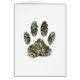 A camo dog paw print cartoon style with distressed effect applied to image.