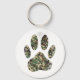 A camo dog paw print cartoon style with distressed effect applied to image. Custom key chains.