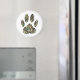 A camo dog paw print cartoon style with distressed effect applied to image. Custom magnets.