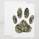 A camo dog paw print cartoon style with distressed effect applied to image.