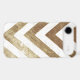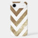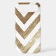 This case is awesome, especially with a gold iPhone. This very stylish case is made of hard, shiny plastic and fits snugly on the phone, although it is still easy to remove. It does not add bulk to the phone, and there are slots to make it easy to turn the phone on and off, volume up or down. However, if you're looking for major protection for the phone, this probably isn't the case for you. That being said, I love it! There was no print on this iPhone case. The distressed chevrons look exactly as the picture portrays.