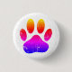 Cartoon dog pawprint in orange, red, pink, blue and purple.. Custom buttons with grunge, distressed effect.