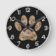 Distressed Desert Camo Dog Paw Print With Numbers Round Clock