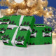 Distressed Dog Paw Print And Bone On Green Wrapping Paper