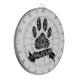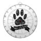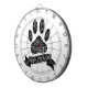 Distressed dog paw print with black ribbon. Man's best friend. Black and white image.