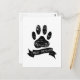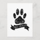 Distressed dog paw print with black ribbon. Man's best friend. Black and white image.