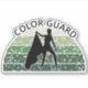 Show off your love of colour guard with this silhouette of a member with their flag on a background of distressed greens.