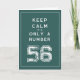 Distressed keep calm typography 56th Birthday card. Fun Keep Calm and Carry On quote for 56 year old. Make your own age specific spoof with custom age number. Cool greeting card idea for men or women. Rustic vintage typography template. Custom colour background. Personalise with message inside.