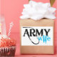 Black and light blue Army Wife in distressed letters.