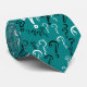 This cool necktie features distressed question marks of varying sizes and fonts in black and white on teal.