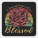 Distressed Retro Sunset Red Rose Blessed Square Sticker