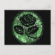 Distressed Rose Silhouette Cameo - Green Postcard