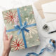 Distressed Vintage Red Green Snowflake Pattern Wrapping Paper
