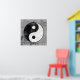 Heavily distressed yin yang symbol poster in black, white and a whole lot of grey.