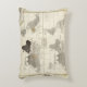 The cushion is small to medium sized. It can be washed. It is well constructed. The material used is pleasant and feels decent quality. It has a very slight plush feel which is good. It is well labelled and its care clearly stated. Theres nothing not to like about it. All in all a good item. The deduction of one star overall is due to long delays in delivery to the UK. It's not clear if this was due to Zazzle or somewhere else in the chain as I did not receive status updates of dispatch or progress. I cannot comment anymore on that other than to say that was our experience but it may not be the same for you. The printing was surprisingly close to what we were expecting. Its an art piece and on material so its hard to assess the precision of printing but it seems close to the original. The soft lines are reproductions of the original. The colour is a fair reflection of the painting. This was printed in the US and it looks like US quality. No issues.