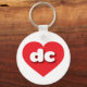 This key chain features a vibrant red heart containing the bold, white, rounded lower case letters dc, a playful abbreviation for the District of Columbia.