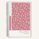 This notebook features a dusty pink background with a right-weighted floral panel scattered with small white blossoms. A narrow vertical swatch panel on the left adds subtle structure and contrast, giving the design a clean, modern balance. The white footer grounds the layout and keeps the overall look soft, calm, and thoughtfully composed.