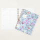 Floral art on blue, personal planner in large size 8.5 x 11 inches (or choose 8x5). A pretty little flower pattern in pink, blue, orange and white, with greenery, covers the front and back, is a unique, hand-illustrated design. A light shadow effect makes the flowers and leaves appear to "pop" off the cover. Add text to the center with a personal name, family name, business, or other. Choose a hard, or soft cover style. Date it, and keep everything organized, with easy to access daily, weekly or monthly plans and appointments.