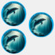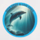 A dolphin underwater with rays of sunlight filtering through the water. The words 'Dive deep, live free' are written above the image. A wonderful sticker with an inspiring message. Contains generative content.