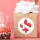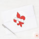 A custom designed red and white "Dive Flag" Fleur de lis with a white background on round stickers.