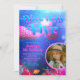 This invitation uses blue and pink as main colour pallet. Depth in the design is given attention by making the fishes look very far from the main focal view point. Lighting effects are used especially in the mermaid tail, to make it the star of the design
