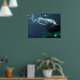 Manta Ray in the dark ocean depths. Destination scuba souvenir and gifts