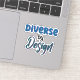 A typography sticker that says “Diverse by Design” in blue and green to promote neurodiversity awareness and acceptance.