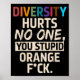 Diversity Hurts You Stud Orange Fck Funny Slogan Poster