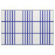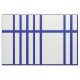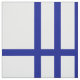 Stylish fabric features a bold geometric pattern with groups of five vertical blue stripes divided by horizontal blue lines. The blue on white design has a classic look and is an original creation.