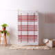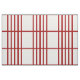 Stylish fabric features a bold geometric pattern with groups of five vertical red stripes divided by horizontal red lines. The red on white design has a classic look and is an original creation.