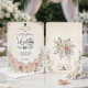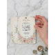 Romantic blush roses and soft watercolor botanicals frame a graceful proposal silhouette, creating an elegant boho garden aesthetic for a spring wedding announcement.This design reflects traditional romantic wedding stationery styling, where a floral frame gently surrounds the central text area. Soft watercolor peonies and ranunculus in dusty blush, rose pink, and peach tones blend with airy eucalyptus greenery in muted sage, creating a balanced botanical composition. The background appears as a warm cream parchment tone, giving the layout a refined, heritage-inspired look often seen in classic garden wedding stationery.At the center of the design, an elegant silhouette of a couple proposing adds a narrative focal point, while flowing script lettering paired with a modern serif typeface establishes a hierarchy commonly used in formal invitation layouts—script for emotional emphasis and serif text for readability.This is a flat printed image with a faux parchment watercolor texture effect, not actual raised or textured material.