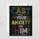 A cross adorned with the comforting words Cast all your anxiety on him, symbolising surrendering worries to a higher power for peace and solace.