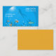 A modern stylish business card suitable for a deep sea diving instructor or diving business. This card features a cute illustration by Freepik of a diver underwater with tropical fish. Text can be fully customised to suit you needs. Blue and orange theme.