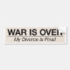 Divorces can get ugly...War is Over bumper sticker celebrates the end of the fighting when the divorce is final. Newspaper headline style design.
