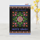 A pretty Diwali Greeting Card for Grandparents, with a brightly coloured Rangoli pattern and a border of Orange, Pink and Blue Flowers and a Rangoli motif, from a hand-painted paper collage by Judy Adamson. Part of the Posh & Painterly 'Rangoli' collection.