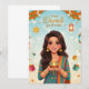 Diwali festival celebration with traditional woman holding diya lamp and gift boxes