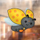 Yellow ladybug with rangolis for dots and a vermillion bindi, holding a deepa.