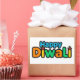 This “Happy Diwali” artwork celebrates warmth and devotion with playful charm. The thick black outline gives a crisp festive pop, while glowing patterns of diyas and fireworks dance inside each letter. Imagine this design as a wish that travels — from your heart to every loved one celebrating far away.