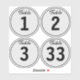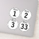 Decals for DIY table numbers that you apply to your own vinyl record. Four individual label stickers printed and cut from a 6"x6" sheet. Each label is approximately 3" diameter, which should cover most of a typical 7" 45 RPM record label.