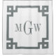 Initially set to white, you can choose your own background colour with this Greek Key framed design. You can also change the text font, text colour, move the text to adjust the monogram letter spacing, etc. Click on the "Customise" button to make changes.
