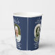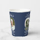 Look who's 90! Add an elegant personalised touch to 90th birthday party decorations for him or her with stylish custom photo paper cups. Pictures and wording on this template are simple to customise. The navy blue and white colours for the background, text and number outlines can all be customised by using the Zazzle design tool. (IMAGE PLACEMENT TIP: An easy way to position a photo exactly how you want is to crop it before uploading to the Zazzle website. If you need additional help, please message me :) These cups feature two pictures of your choice, modern handwritten style script calligraphy and classic vintage art deco typography. The gender neutral design is also suitable for either a man or a woman. Happy Ninetieth Birthday!
