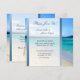 Easy to customise, here's a beautiful destination beach wedding template with crystal blue water, mountain background and sandy beach ... the perfect backdrop to showcase your wedding invitations. A sandy beach with white waves and blue water ... the back is "matchy" with room for wedding reception invitation. RSVP cards and postage stamps are available in this romantic design ...