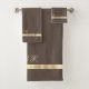 DIY Fancy Gold Monogram Name, Gold Stripe, Brown Bath Towel Set