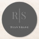 DIY Grey Monogram & White Name on Dark Grey Round Paper Coaster
