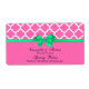 DIY Quatrefoil and Background Colours: Stylish Moroccan Quatrefoil Trellis Lattice Pattern, Emerald Green Satin Look Bow Ribbon Party Water Bottle Label / Wine Bottle Label ========