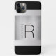 Personalise with your Monogram and Name on brushed silver metal for a contemporary and dynamic look in black and grey. A simple, modern style with black background that will dress-up your iPhone Case perfectly. Makes a great gift.